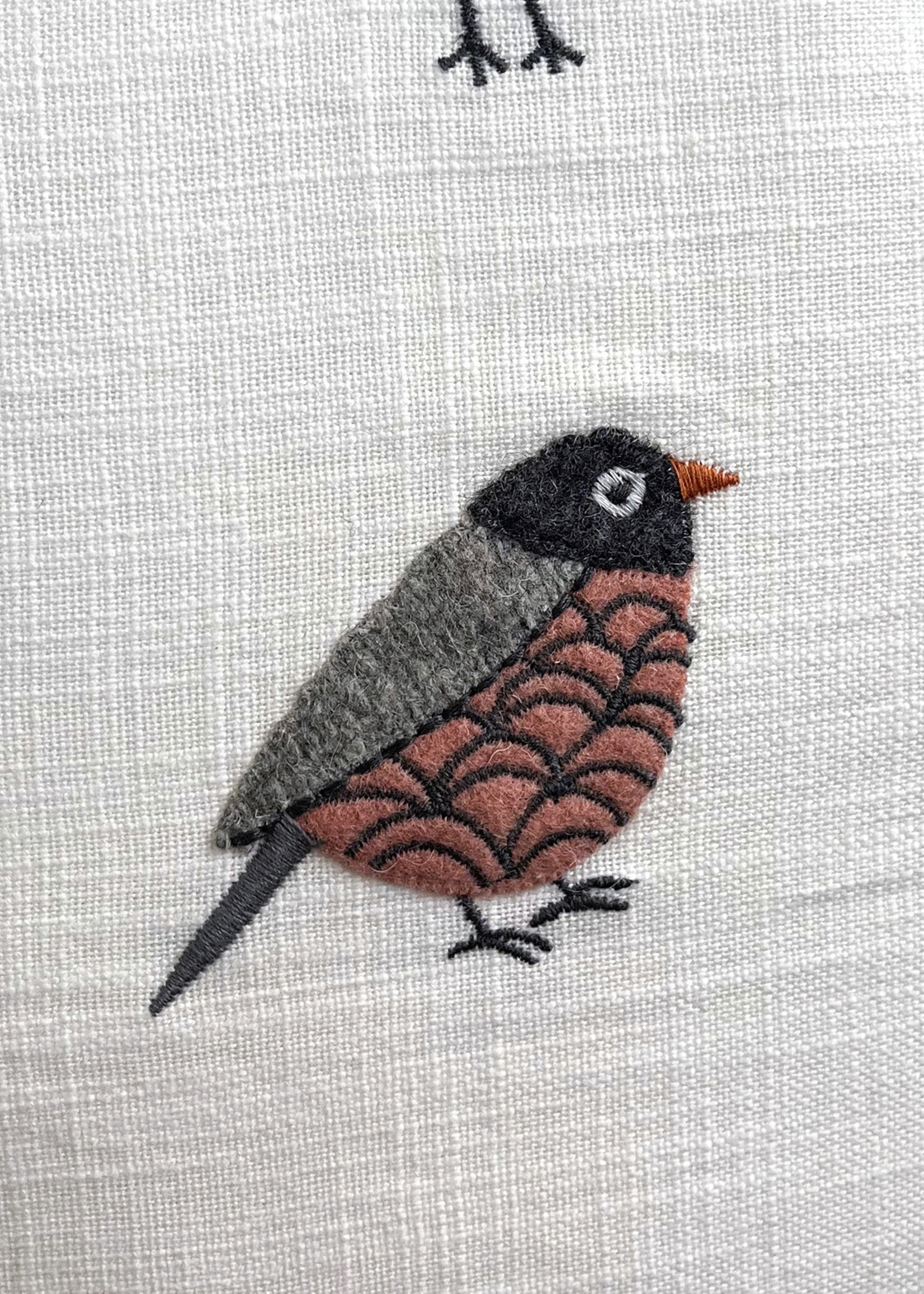 Add a touch of avian charm to your home with this cotton throw pillow. Featuring nine intricately embroidered and appliqued birds, each with unique feather patterns in soft grey tones and muted pastel hues. Ethically handmade in India.